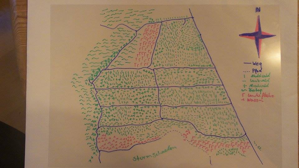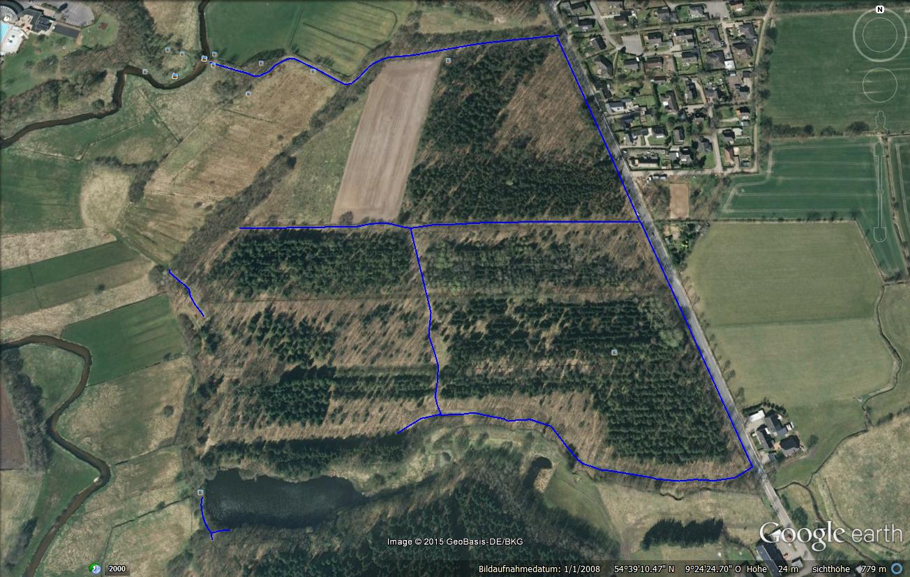 Weiterhin sollen Baumbestände nach Arten eingezeichnet und Wasserflächen ergänzt werden.